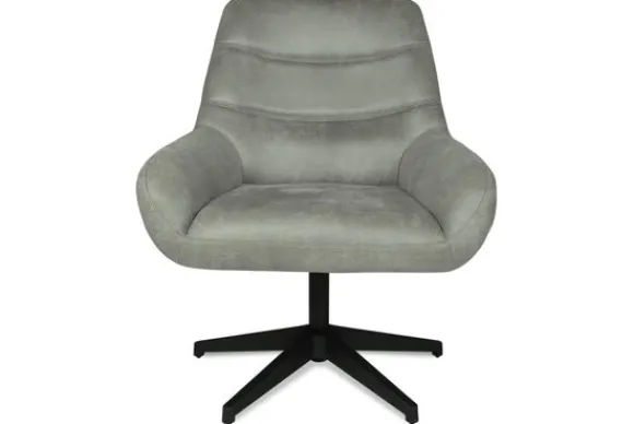 Draaifauteuil Toma van het merk Olijk is verkrijgbaar in vier verschillende kleuren. De rugleuning van de fauteuil is voorzien van horizontale stiksels. De fauteuil heeft een zwart metalen sterpoot en is 360 graden draaibaar.