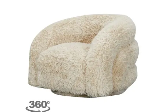 Draaifauteuil Lenny 213288 van het merk Richmond Interiors is een speels en knus meubelstuk dat speciaal is ontworpen voor kinderen. De fauteuil is bekleed met een zachte, fluffy stof in een warme zandbeige tint, wat niet alleen een luxe uitstraling geeft, maar ook zorgt voor optimaal comfort.