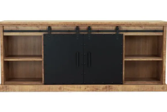 Dressoir Douglas – Industry van het merk Lamulux wordt geleverd in de kleur Mango. De combinatie van metaal en lamulux geeft het dressoir een stoere uitstraling. Het dressoir heeft twee metalen schuifdeuren die je zelf voor de gewenste rij kunt plaatsen. In het midden bevindt zich één groot open vak met daaronder twee ruime lades. Achter de schuifdeuren vind je meerdere open vakken.