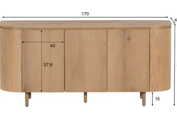 In een Japandi interieur komt dit dressoir prachtig tot zijn recht dankzij de balans tussen minimalistische esthetiek en warme, organische accenten. De eenvoud van het ontwerp draagt bij aan een serene sfeer waarin elk detail functioneel én visueel betekenisvol is. Ook binnen een modern interieur met heldere lijnen en neutrale kleuren vormt dit meubel een elegant middelpunt dat niet overheerst, maar juist aanvult.