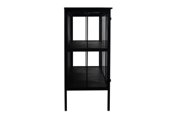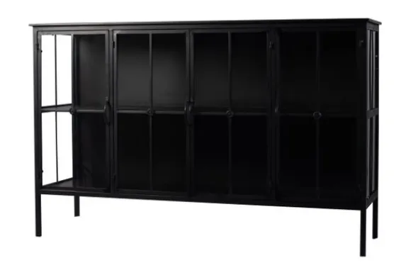 Dressoir Cave 706502 van het merk PTMD Collection heeft een moderne uitstraling door zijn strakke lijnen. Met vier deuren waar twee planken achter zitten, heeft deze kast een ruime opbergruimte met een hoogte van 32 cm per plank. Het zwarte ijzer in combinatie met glas en de decoratieve afwerking geven de Cave een stoere uitstraling die past in ieder interieur.