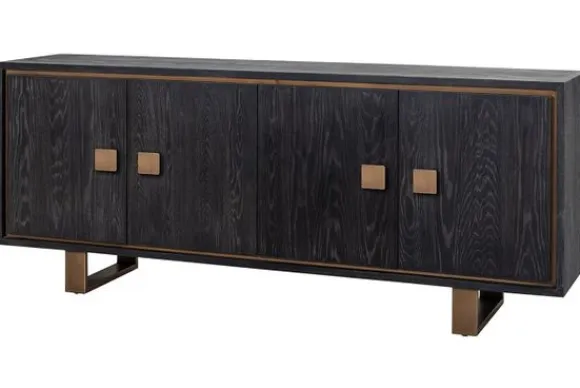 Dressoir Hunter 210476 van het merk Richmond Interiors is een kast die één en al moderne luxe uitstraalt! De kast is namelijk gemaakt van zwart gebeitst eiken met details van roestvrij staal die een antiek gouden kleur hebben. De kast heeft vier deuren waar in totaal vier opbergvakken achter zitten. Het dressoir is eenvoudig te onderhouden, als er een vlek op komt kan je deze eenvoudig wegdeppen met keukenpapier of een doek met wat water.