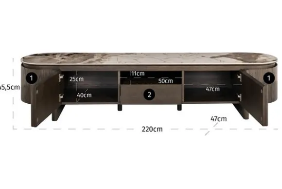 Tv-meubel Langford van het merk Richmond Interiors is een stijlvol meubel dat luxe en warmte samenbrengt.