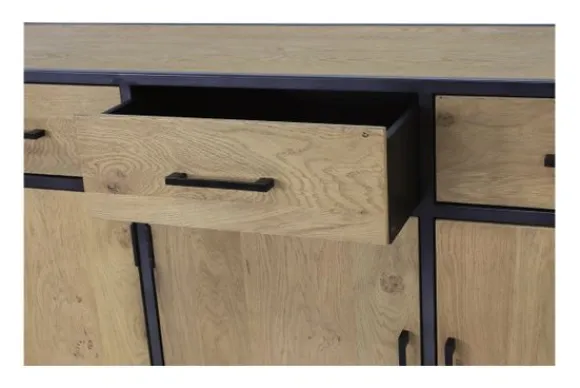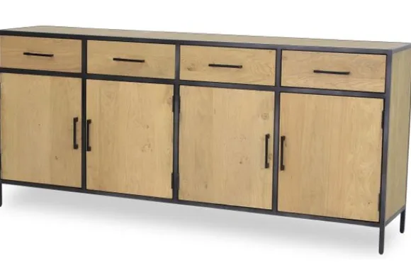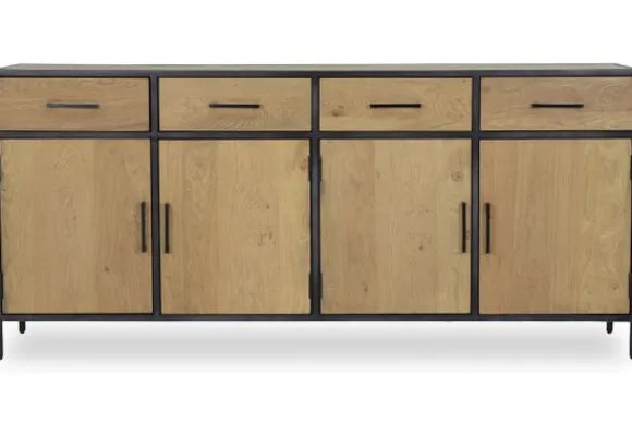 Dressoir Luna NA 0081 van het merk Tower Living is onderdeel van een compleet woonprogramma. Deze meubelen zijn gemaakt van gefineerd eiken en worden gecombineerd met een metalen frame in de kleur gun metal. De prachtige houtkleur is verkregen door het eikenhout te roken. Voor een gemakkelijk onderhoud worden de meubelen met een matte lak afgelakt. Strakke lijnen en natuurlijke kleuren kenmerken deze meubelserie. Deze kast is voorzien van vier deuren met boven elke deur één lade.