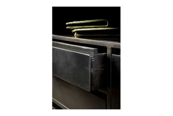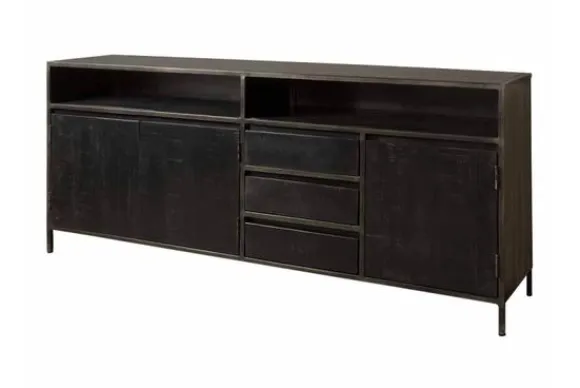 Dressoir Paterno NA 0100 van het merk Tower Living is gemaakt van zwart gebeitst mangohout en industrieel staal. Door het simpele ontwerp is deze meubelserie ideaal om mee te mixen en matchen. De kast heeft drie deuren, drie lades en twee grote open vakken, genoeg opbermogelijkheden dus!