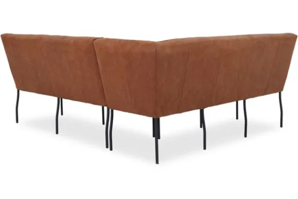 Deze eetbank wordt standaard uitgevoerd met rechte poten en een geknepen naad. Er kan ook voor een dichte naad gekozen worden.