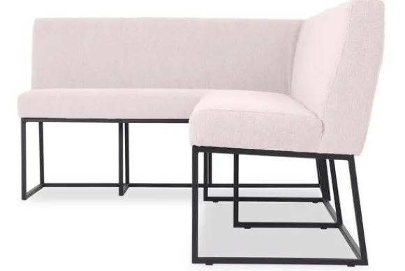 Eetkamerbank Amuse van het merk Divani is verkrijgbaar in alle kleuren en in materiaalsoorten zoals stof, velvet en rundleder. Je kunt kiezen uit diverse afmetingen en pootmogelijkheden. Deze bank wordt standaard uitgevoerd met een zwarte metalen sledepoot, je kunt ook kiezen voor RVS. De poot loopt door onder de zitting van de eetbank, verder loopt de middelste poot iets minder ver door naar voren dan de twee buitenste poten. Deze eetbank is afgewerkt met dichte naden en een gladde rugleuning.