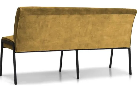 Deze eetkamerbank komt met een gladde rugleuning en met metalen rechthoekige poten afgewerkt met kunststof dopjes.