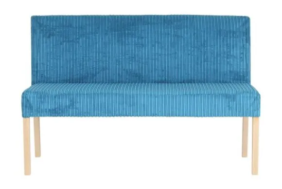 Deze eetbank wordt standaard uitgevoerd met houten poten in de kleur blank.