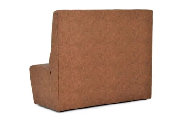 Eetkamerbank Sieger van het merk Drooq Design Plus is verkrijgbaar in verschillende kleuren en materialen zoals stof en leder. Deze bank wordt standaard geleverd met verticale stiksels in de rugleuning.