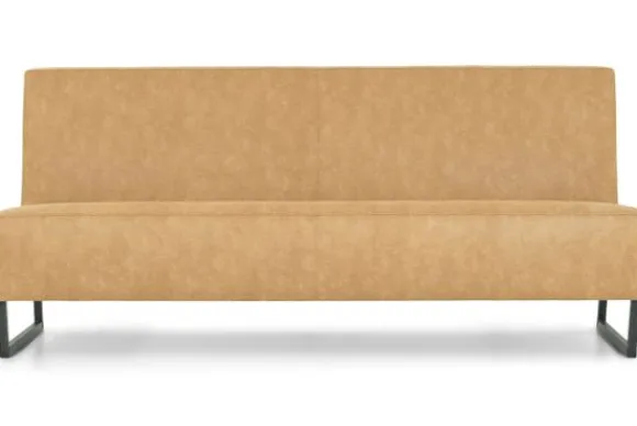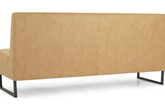 Deze eetkamerbank komt met een dichte naad, metalen sledepoten, gladde rugleuning en dichte voor- en achterkant. Deze eetbank wordt geleverd met een extra steunpoot in het midden vanaf een breedte van 220 cm tot 250 cm, vanaf 250 cm komt er een extra sledepoot in het midden.