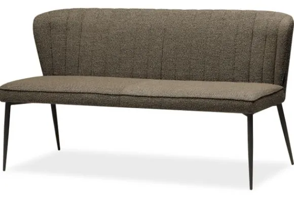 Eetkamerbank Trije van het merk Olijk is verkrijgbaar in vier verschillende kleuren en diverse afmetingen. De eetbank heeft verticale stiksels in de rugleuning lopen wat voor een mooi ontwerp zorgt. De rugleuning loopt naar buiten af, wat zorgt voor een comfortabele zit en voor een goede ondersteuning in de rug zorgt. De zwarte, metalen poten zorgen voor een moderne uitstraling.