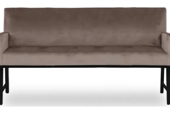 Eetkamerbank Montreal van het merk Rebel en Classic is beschikbaar in alle kleuren en in verschillende materiaalsoorten zoals stof, velvet, microvezel en rundleder. Daarnaast kun je kiezen uit verschillende afmetingen en diverse pootkleuren. Deze eetbank (zoals afgebeeld) is met armleuningen, heeft een gladde rug en heeft zwarte houten poten.