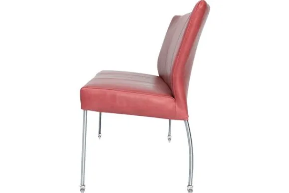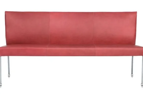 De eetkamerbank wordt standaard uitgevoerd met RVS poten met skatewieltjes.