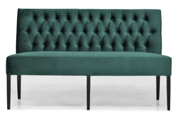 Eetkamerbank Liselotte van het merk Vie Chic is verkrijgbaar in alle kleuren en in verschillende materiaalsoorten, zoals velvet, stof en microvezel. Je kunt kiezen uit diverse afmetingen, pootmogelijkheden en handgrepen onder het kopje “extra opties”. De rugleuning van deze eetbank is hoog en loopt schuin naar achteren, dit zorgt voor een goede rugondersteuning. Hierdoor kun je lang en comfortabel op deze eetkamerbank zitten.