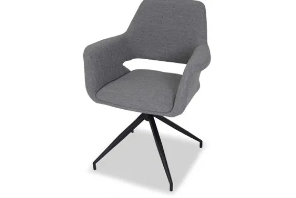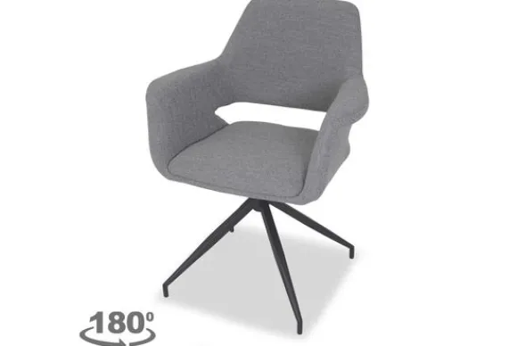 Eetkamerstoel Maeve – teddy alpine steel van het merk Veyron is beschikbaar in verschillende kleuren en bekledingen. Deze stoel is bekleed met de teddy stof Alpine 149. De Maeve is voorzien van armleuningen en een opening onderaan de rugleuning. Deze stoel is 180 graden draaibaar en is voorzien van een terugdraaisysteem. Door het terugdraaisysteem kun je de zitting van de stoel draaien en daarna zal deze uit zichzelf weer terug draaien naar het midden.