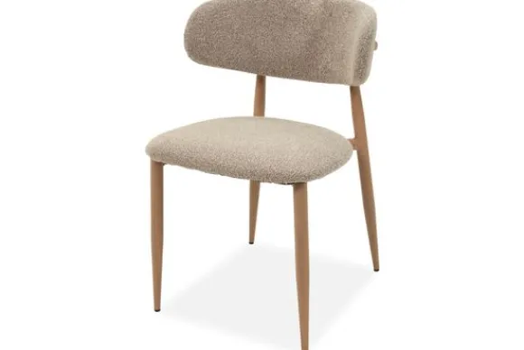 Eetkamerstoel Kaito van het merk Plix is een stijlvolle stoel met een warme en natuurlijke uitstraling. De zachte boucle beige bekleding in combinatie met het lichte onderstel zorgt voor een frisse en luchtige look.