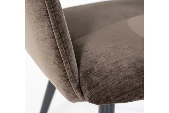 Eetkamerstoel Esmee Bruin Mellow 95934 van het merk Eleonora is gemaakt van polyester. De fraaie uitsparing in de rugleuning geeft de stoel een luchtig en speels karakter. De zwarte, naar buiten staande poten zorgen ervoor dat de stoel lekker stabiel op de grond staat en draagt daarnaast bij aan de leuke speelse touch.