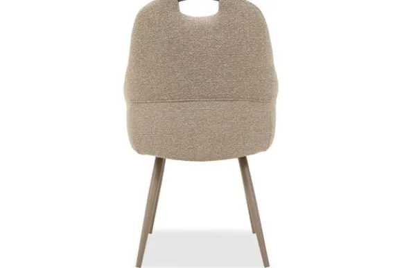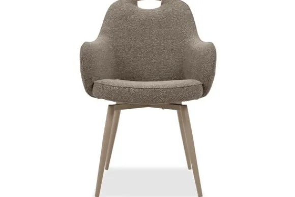 Eetkamerstoel Cronos van het merk Elysia is een comfortabele stoel met een handvat bovenaan de rugleuning. De ronde kuip sluit mooi aan en de armleuningen geven fijne steun.
