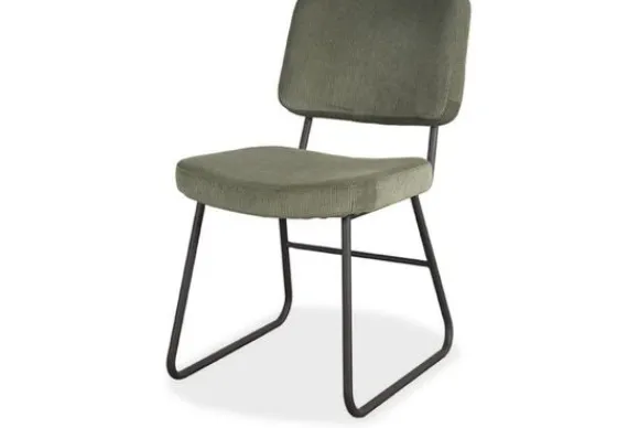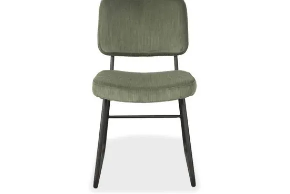 Eetkamerstoel Noah is uitgevoerd in forest ribcord, een groen kleurige stof met een verticale ribrichting. Noah bestaat uit een rechthoekige rugleuning voorzien van afgeronde hoeken, aparte rugleuning en zitting, die verbonden zijn door een prachtig doorlopend zwart frame, voorzien van een handgreep op de achterkant van de rugleuning. Dit maakt Noah extra functioneel waardoor het aanschuiven van deze eetkamerstoel nog makkelijker wordt. De sledepoot zorgt voor een luchtig en elegant uiterlijk.
