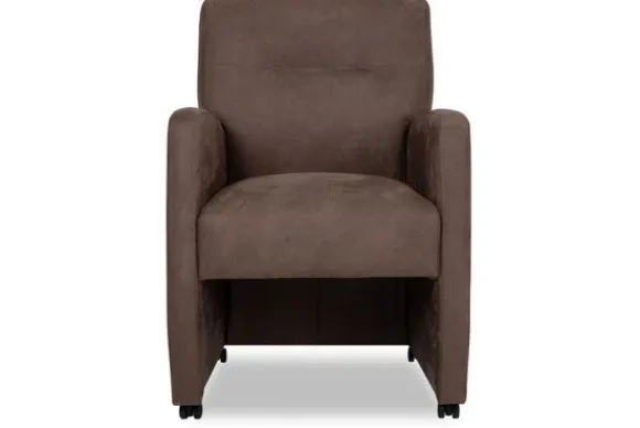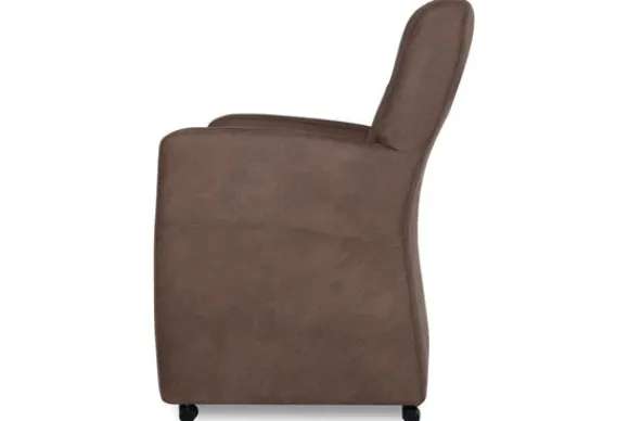 Eetkamerstoel Joyzz van het merk Donc is verkrijgbaar in alle kleuren en verschillende materiaalsoorten zoals stof, velvet en rundleder. Je kunt zelf kiezen of je deze stoel wilt met of zonder handgreep. De eetkamerstoel heeft een robuust uiterlijk doordat de stoel aan drie van de vier kanten tot net boven de grond is doorgestoffeerd. Ook heeft de stoel een subtiel verticaal stiksel in de rugleuning wat voor een leuk detail zorgt. Deze eetkamerstoel heeft wieltjes, zodat je de stoel makkelijk kunt verplaatsen en aanschuiven. Door de armleuningen biedt deze stoel extra comfort en kan er gezellig nagetafeld worden.
