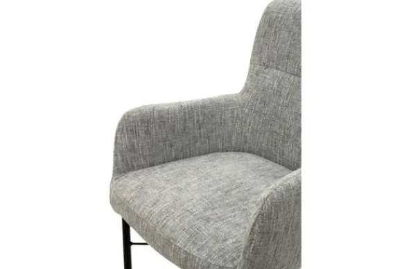 Eetkamerstoel Kepner van het merk Donc is een verfijnde combinatie van comfort en stijlvol design. De slanke armleuningen en hoge rug geven de stoel een luchtig, elegant karakter, terwijl de zachte zitting uitnodigt tot urenlang tafelen.