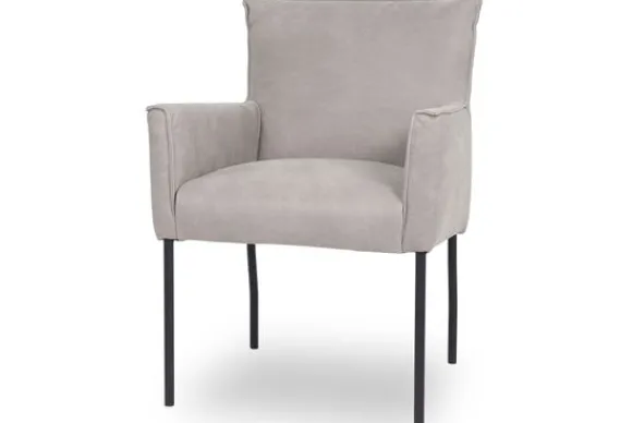 Eetkamerstoel Nikki van het merk Dining & Chill is verkrijgbaar in alle kleuren en verschillende materiaalsoorten als stof, rundleder en kunstleder. De eetstoel heeft een strakke uitstraling dankzij de dunne metalen pootjes. De vaste, rechte rugleuning en de vaste zitting maakt dit helemaal compleet.