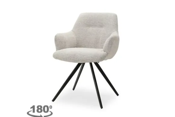 Eetkamerstoel Doreen Sneak Natural van het merk Livingfurn is verkrijgbaar in verschillende kleuren en stoffen. Doreen is voorzien van een rustieke stof, die de stoel een stijlvol uiterlijk geeft. De zwarte stalen poten zorgen dat de stoel stabiel op de grond staat. Deze stoel is 180 graden draaibaar.