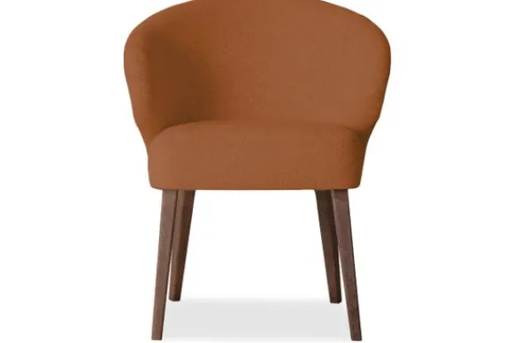 Eetstoel Rovanni heeft een zachte, afgeronde vorm die uitnodigt om aan te schuiven. De armleuningen lopen vloeiend over in de rug en geven extra steun. Dankzij het compacte formaat past deze stoel gemakkelijk aan verschillende tafels.