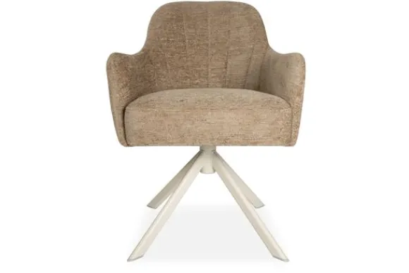 Eetkamerstoel Tavers van het merk Bellagio Seats is verkrijgbaar in alle kleuren en verschillende soorten rundleer en stof. De stoel heeft een moderne en Scandinavische uitstraling tegelijk door de vormen die gebruikt zijn voor de stoel. Je kunt ook heerlijk zitten in de stoel dankzij de ronde vormen en de armleuningen. De stoel heeft verticale stiksels aan de binnenkant van de rugleuning en ronde armleuningen. De stoel staat op een metalen spinpoot. Deze eetkamerstoel (zoals afgebeeld) wordt standaard geleverd met een wit/beige metalen draaipoot met een 360 graden terugdraaisysteem. Door het terugdraaisysteem kun je de zitting van de stoel draaien en daarna zal deze uit zichzelf weer terugdraaien naar het midden.