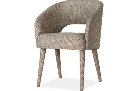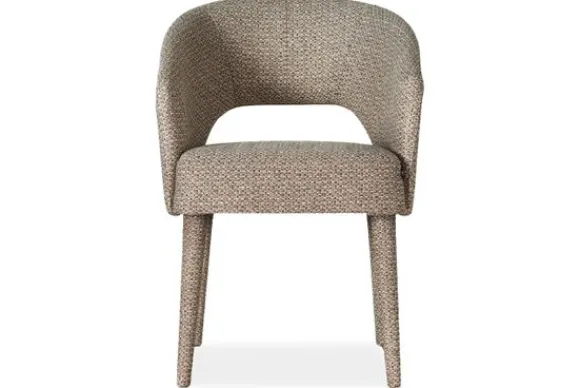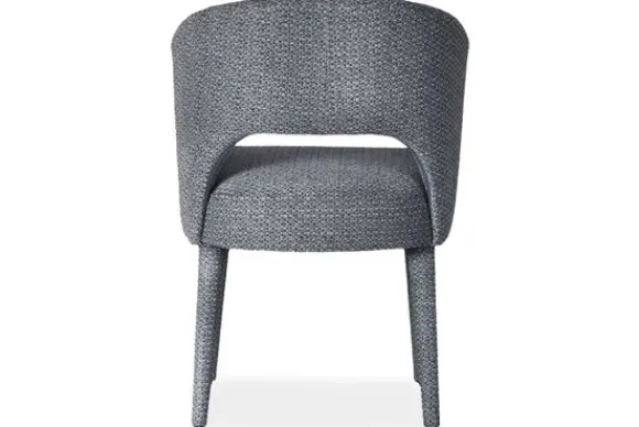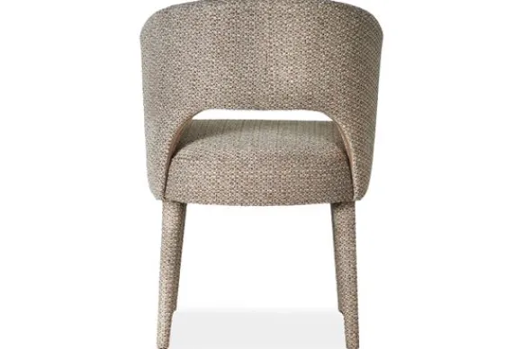 Eetkamerstoel Andy van het merk Bellagio Seats heeft een zachte ronde vorm met een opening in de zitting. De brons metalen spinpoot zorgen voor een chic accent.