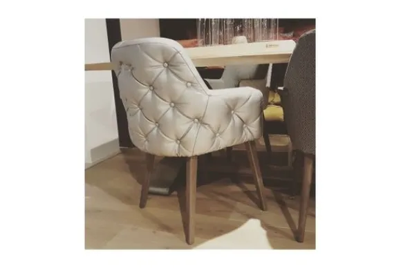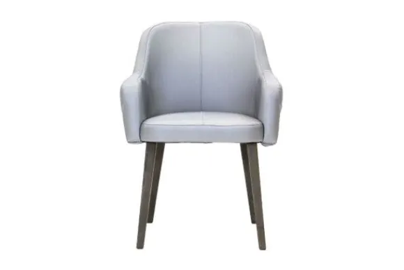 Deze stoel wordt standaard uitgevoerd met houten poten in de kleur koloniaal.