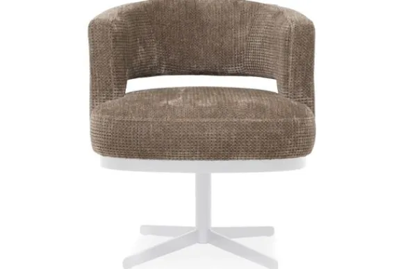 Eetkamerstoel Zenna van het merk Caggia is beschikbaar is in alle kleuren en verschillende bekleding, zoals stof, microvezel en rundleder. De eetkamerstoel is 360 graden draaibaar. Het frame van de draaivoet is gemaakt van metaal.