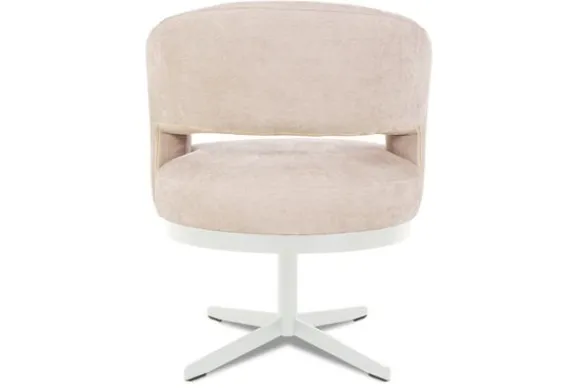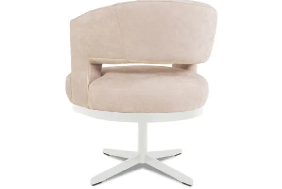 Eetkamerstoel Zenna van het merk Caggia is beschikbaar is in alle kleuren en verschillende bekleding, zoals stof, microvezel en rundleder. De eetkamerstoel is 360 graden draaibaar. Het frame van de draaivoet is gemaakt van metaal.