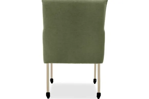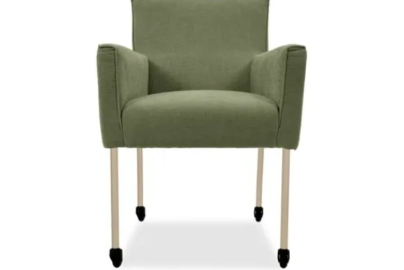 Eetkamerstoel Nikki is verkrijgbaar met of zonder armleuningen en met verschillende pootopties, waaronder wieltjes.