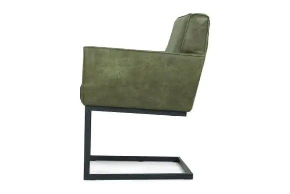 Eetkamerstoel Fun van het merk Divani is verkrijgaar in alle kleuren en verschillende materiaalsoorten als stof, rundleder en kunstleder. De stoel heeft open naden en een metalen poot wat voor een stoere uitstraling zorgt.