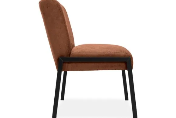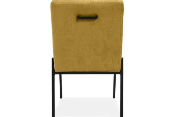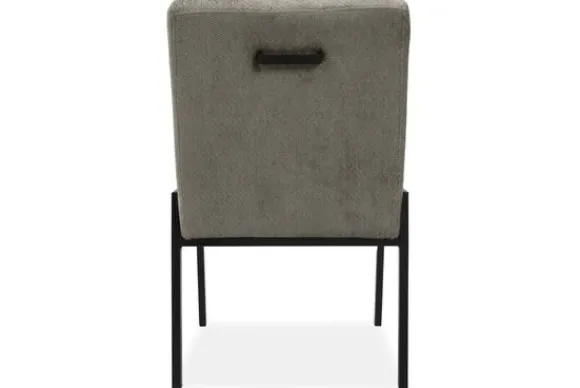 De stoel is op de foto uitgevoerd in een gladde stof zonder reliëf, maar je kunt ook kiezen voor varianten met structuur. Daarnaast bepaal je zelf of je een handgreep aan de achterkant wilt of liever een strakke, rustige rug behoudt. Zo stel je de stoel samen op een manier die past bij jouw ruimte en woonwensen.