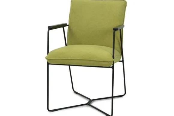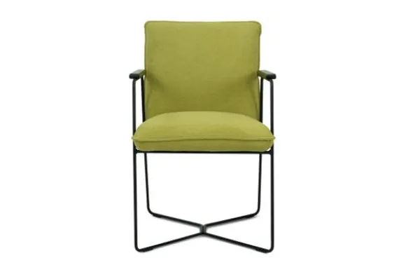 Eetkamerstoel Wouter van het merk Donc is een eetkamerstoel met armleuningen en houten armleggers. Het smalle metalen frame zorgt voor een open uitstraling aan de eettafel. De zitting en rug zijn afgewerkt met geknepen naden, wat zorgt voor een herkenbaar detail in het ontwerp.