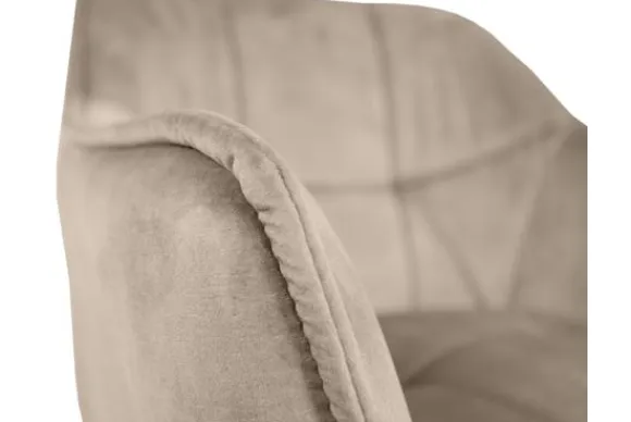 Eetkamerstoel Nadine van het merk Donc is verkrijgbaar in alle kleuren en verschillende materialen zoals stof, velvet en rundleder. Deze stoel heeft in de zitting en in de rugleuning sierlijke stiksels, is voorzien van armleuningen en van zwart metalen poten.