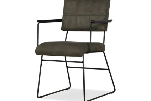 Eetkamerstoel Febe van het merk Donc is beschikbaar in alle kleuren en in materiaalsoorten zoals stof, kunstleder en rundleder. De Febe is een minimalistisch ogende stoel door het smalle metalen frame. In de rugleuning vind je een blokstikstel. Deze Febe is uitgevoerd met armleuning, maar er is ook een uitvoering beschikbaar zonder armleuning.
