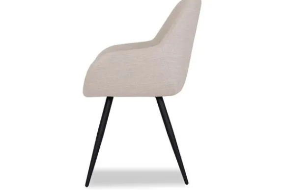 Deze stoel is uitgevoerd in naturel bouclé, een prachtig geweven stof waarbij de oppervlakte bestaat uit lusjes. Fender heeft een ronde zitting voorzien van elegante rondingen. De mooie ‘curve’ van de zitting naar de arm- en rugleuning geeft deze stoel ontzettend veel charme en comfort. De zwarte, naar buiten staande poten zorgen ervoor dat de stoel lekker stabiel op de grond staat en draagt daarnaast bij aan de leuke speelse touch.