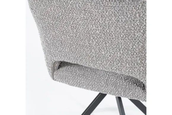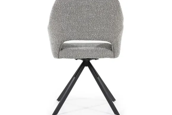 Eetkamerstoel Fabio grijs 95834 van het merk Eleonora is beschikbaar in verschillende kleuren. Deze stoel is bekleed met een grove stof die je kunt schoonmaken met een droge doek. Deze stoel staat op een zwart metalen spinpoot, waardoor deze 360 graden draaibaar is. De rugleuning loopt vloeiend over tot armleuningen en heeft een opening onderin.