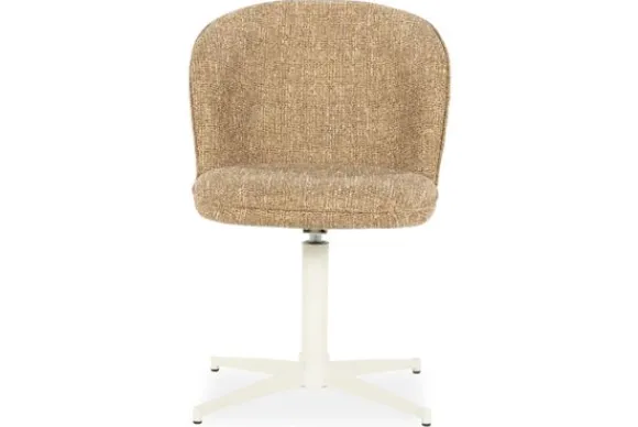 Het onderstel is uitgevoerd in wit gepoedercoat metaal en voorzien van een praktische draaifunctie, waarmee functionaliteit en elegantie samenkomen. De vierpoots kruisvoet zorgt voor een luchtige uitstraling en stabiele basis, perfect passend bij moderne en lichte interieurs.