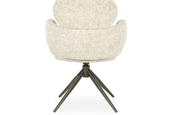Het metalen onderstel met draaifunctie geeft de stoel een eigentijdse look en extra gebruiksgemak. Eetkamerstoel Darcio combineert comfort en karakter op een stijlvolle manier.