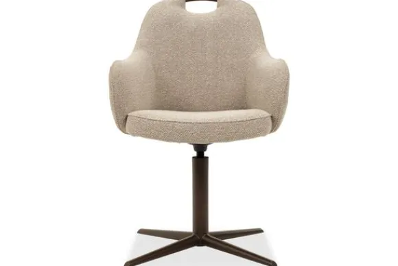 Eetkamerstoel Cronos is samen te stellen met vier verschillende onderstellen van metaal of hout. Afhankelijk van het gekozen onderstel is de stoel 180 graden of 360 graden draaibaar. Daarnaast kies je uit verschillende pootkleuren. Bij metalen poten kleurt het handvat automatisch mee met het onderstel. Bij houten poten heb je keuze uit drie verschillende kleuren voor het handvat.