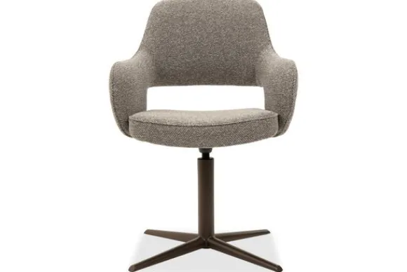Eetkamerstoel Eros van het merk Elysia is een eetkamerstoel met een comfortabele zitting en is uitgevoerd in de stof Mushroom Royal Bouclé. De afgeronde armleuningen en open rug maken deze stoel praktisch in gebruik aan de eettafel.