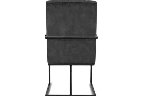 Deze stoel wordt standaard uitgevoerd met zwart stalen poten die doorlopen tot armleuningen. De armleuning zijn gestoffeerd.
