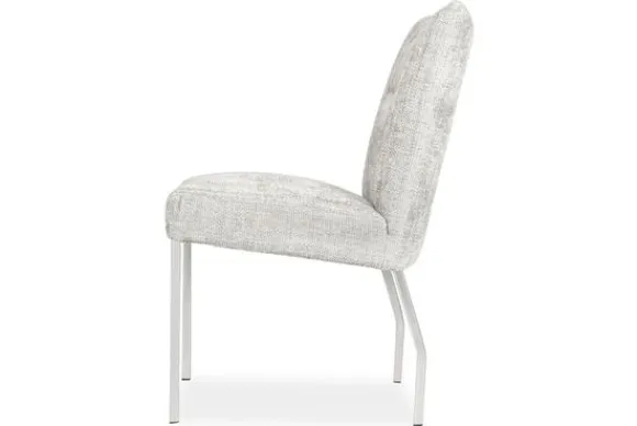 Eetkamerstoel Carina van het merk France is een comfortabele en stijlvolle stoel met een zachte zitting en rugleuning. De subtiele structuurstof geeft een warme uitstraling, terwijl het ranke metalen onderstel zorgt voor een moderne touch.