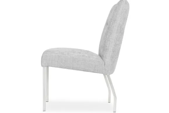 Het horizontale stiksel in de rugleuning en de strakke contouren zorgen voor een moderne, verfijnde uitstraling. De zwarte, ranke metalen poten geven de stoel een stijlvol tintje dat naadloos past in een modern of industrieel interieur.