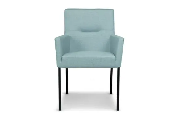 Eetkamerstoel Stromae van het merk France is verkrijgbaar in verschillende kleuren en in materiaalsoorten zoals stof, kunstleder en rundleder. Deze eetstoel wordt standaard uitgevoerd met metalen poot. Deze uitvoering van Stromae heeft armleuningen, maar de stoel is ook beschikbaar zonder armleuningen. Stromae heeft een stoer uiterlijk door de metalen poten en geknepen naden. In de voorkant van de rugleuning zit één horizontaal stiksel en aan de achterkant loopt een verticaal stikstel.